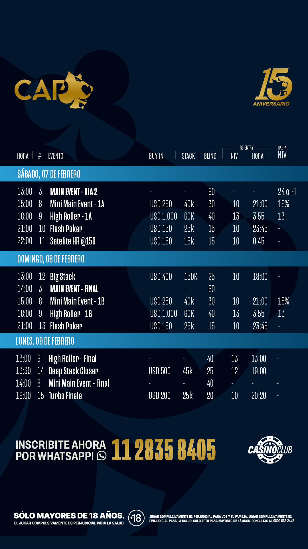 Toda la información de la segunda fecha del CAP en Casino Buenos Aires la encontrás aquí.
